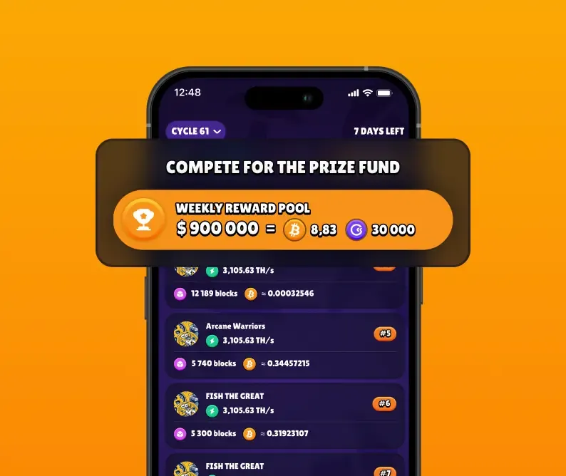 Top clans advance to a higher league every week. Each new league offers tougher rivals and greater rewards. Play smart and rise to the top with your clan to claim the most BTC.